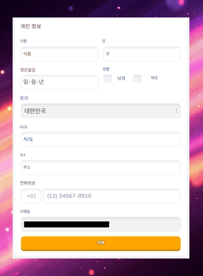 - 이름, 이메일 또는 휴대폰 번호 입력